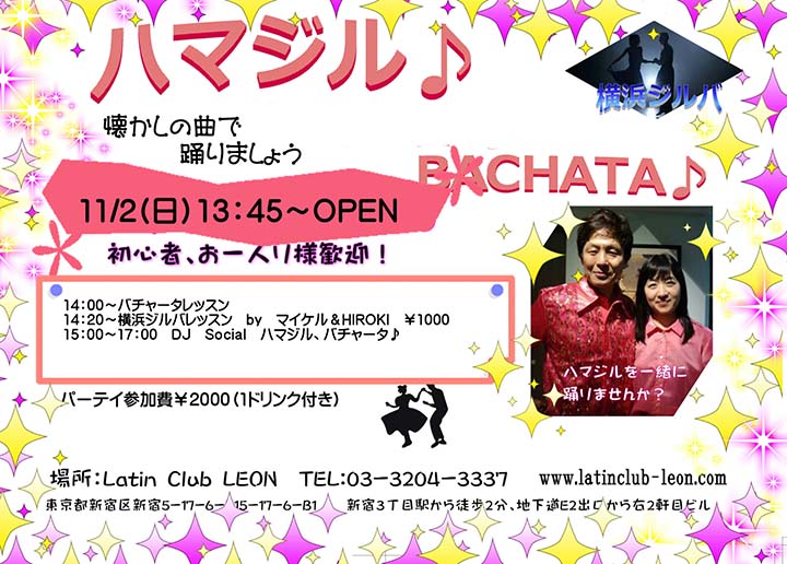 10月11日(土) 新宿ハマジル with Latin (毎月第2土曜日開催)