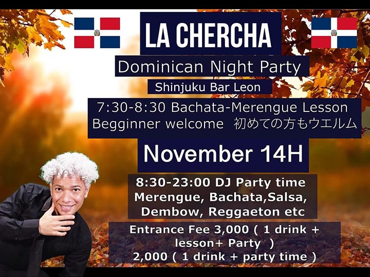LA CHERCHA ! The more fun Dominican Night Party in Tokyo. By the Charsmatic dominican dance instructor Luis Sasaki