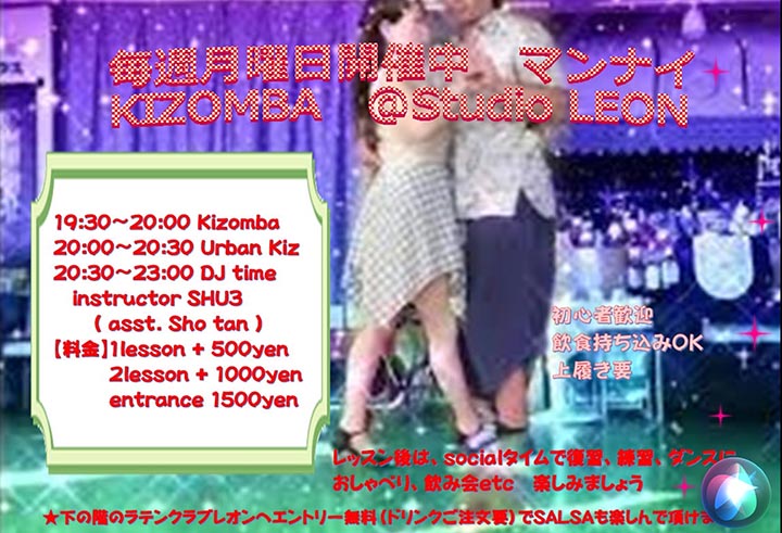 10月6日(月) 毎週月曜日Mon Nite Kiz (Studio Leonのイベントです)